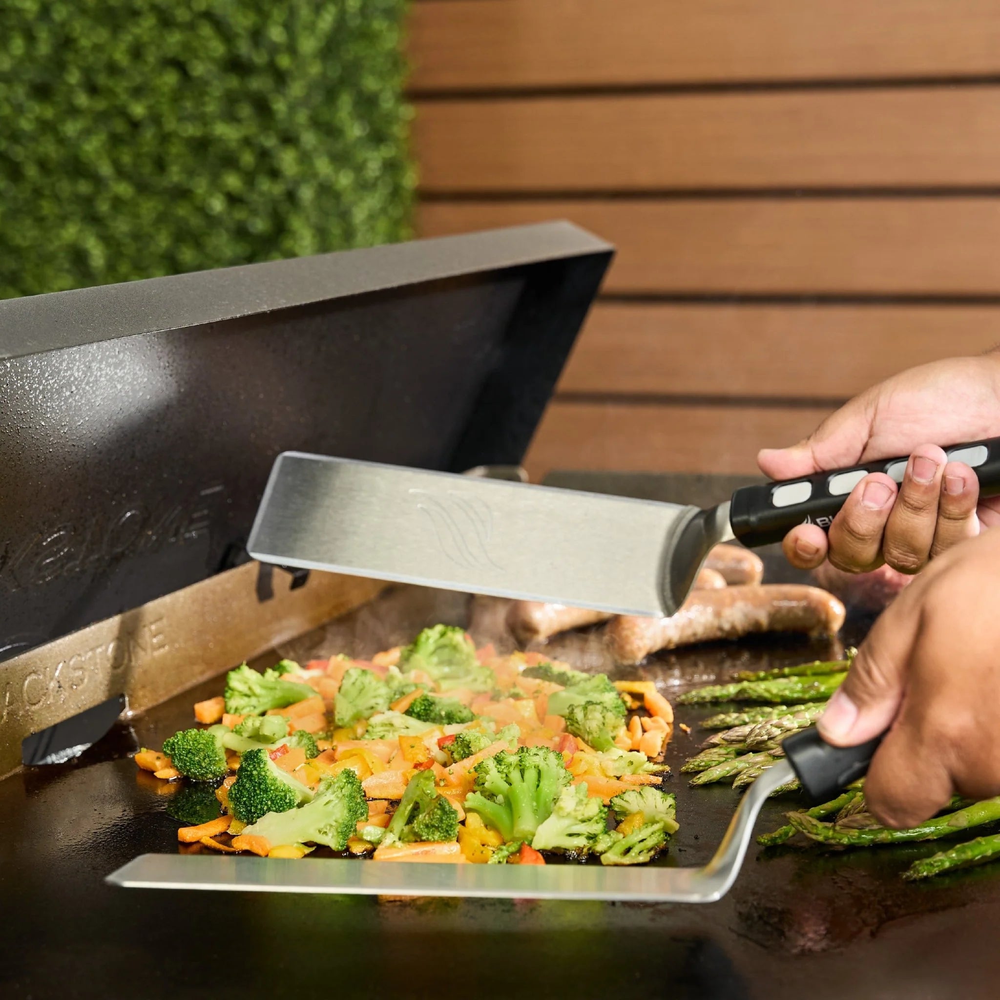The Blackstone Bronco Essential Toolkit comes equipped with everything you need to cook delicious meals anytime. The griddle scraper is a must-have cleaning tool paired with the 32oz squeeze bottle for loosening up those stuck-on messes. The spatulas and tongs make flipping and turning easy, so you’ll be cooking breakfast, lunch, and dinner in no time!